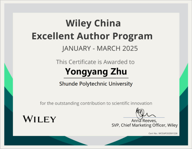 据了解,“威立中国高贡献作者奖” 是Wiley中国为感谢中国作者在推动全球科技进步中作出的重要贡献,在广受中国科研界认可的旗下期刊中,经严格标准评选产生的荣誉。此次评选以 “期刊中国作者发表论文的三个月内全文阅读下载量” 为核心指标,统计范围覆盖2025年1-3月期间,由中国大陆机构作为通讯作者单位发表的所有论文;最终从每本期刊中筛选出下载量名列前茅的论文,向其中国大陆机构作者授予该奖项。朱用洋博士作为共同通讯作者参与的上述论文,在发表后三个月内即收获378次下载,在《Advanced Energy and Sustainability Research》2025年第一季度中国作者论文中位列前茅,发表后迅速引发全球学者的广泛关注,充分彰显了该研究在能源存储领域的学术价值与行业影响力。
